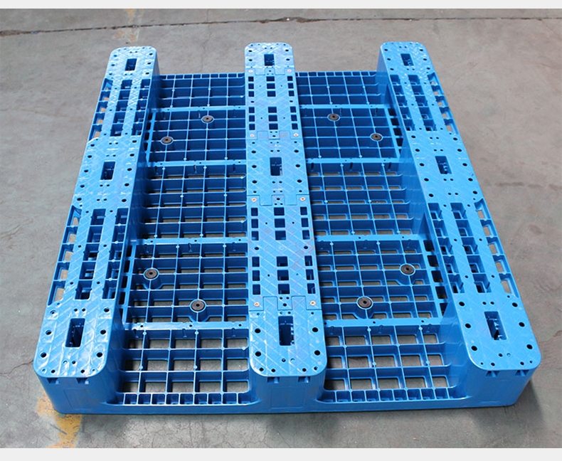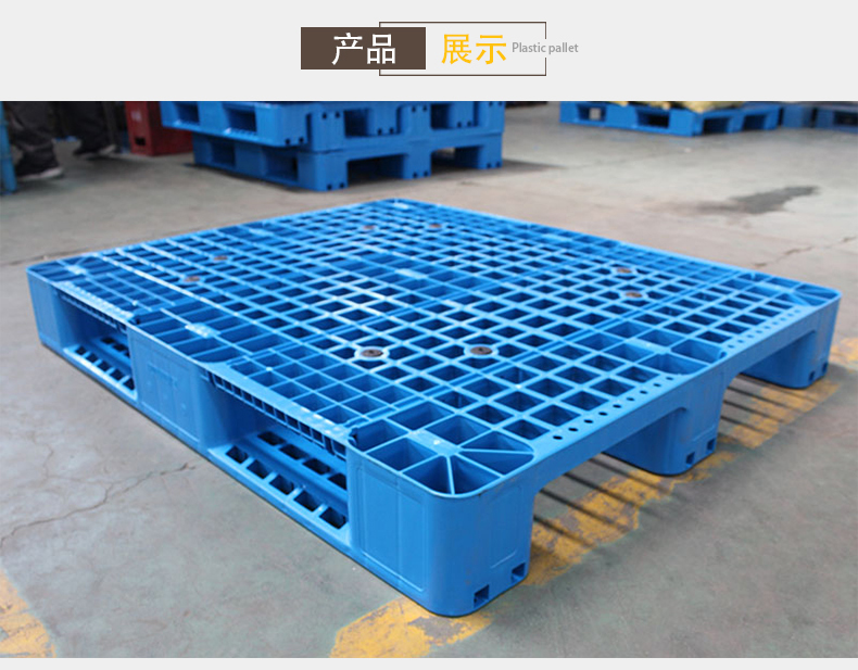 【尺寸】1200*1000*150mm 【自重】13.5kg(±0.5) 【載重】1噸,靜載4噸 【材質(zhì)】PP/PE 【顏色】藍(lán)色 【鋼管】可內(nèi)置10根鋼管,加鋼管后動(dòng)載1噸,靜載4噸 【備注】川字網(wǎng)格塑料托盤能使用叉車周轉(zhuǎn)貨物,可以上貨架使用(上貨架時(shí),承載量根據(jù)貨架結(jié)構(gòu)而定,嚴(yán)禁超載使用)
